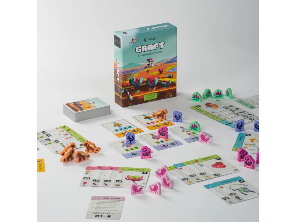 Graft is a card drafting, set collection game where you will fill your cargo manifest with high-value goods and send them back to Zenith Corporation.