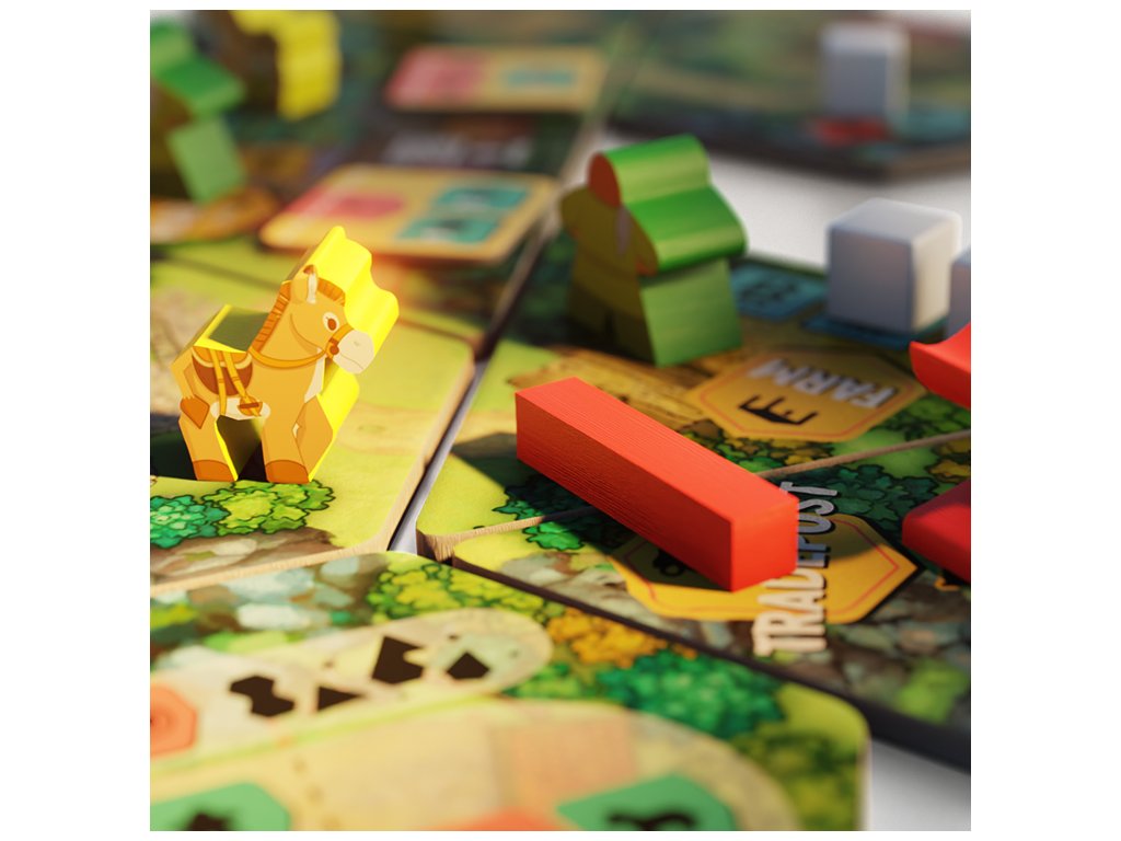 NOTE: Component photos may not fully correspond to the final version of the game available in stores. The game successfully passed through Kickstarter, so most wooden components will likely be unprinted.