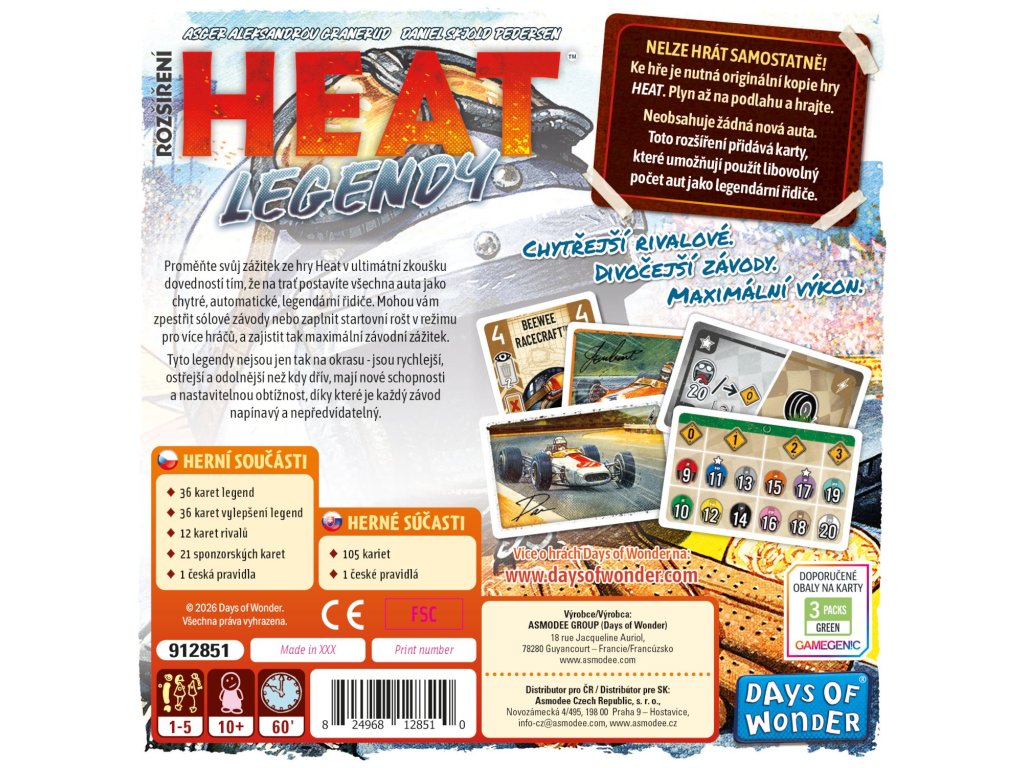 The expansion also adds new modules that further deepen the game system. The Star module gives legends temporary abilities that change from lap to lap, forcing you to react to unexpected situations. The Rivals module then elevates selected legends to real threats that behave more aggressively and can influence the entire course of the race. HEAT: Legends seamlessly builds on the base game Heat and expands it with another layer of strategy without unnecessary rule complications.