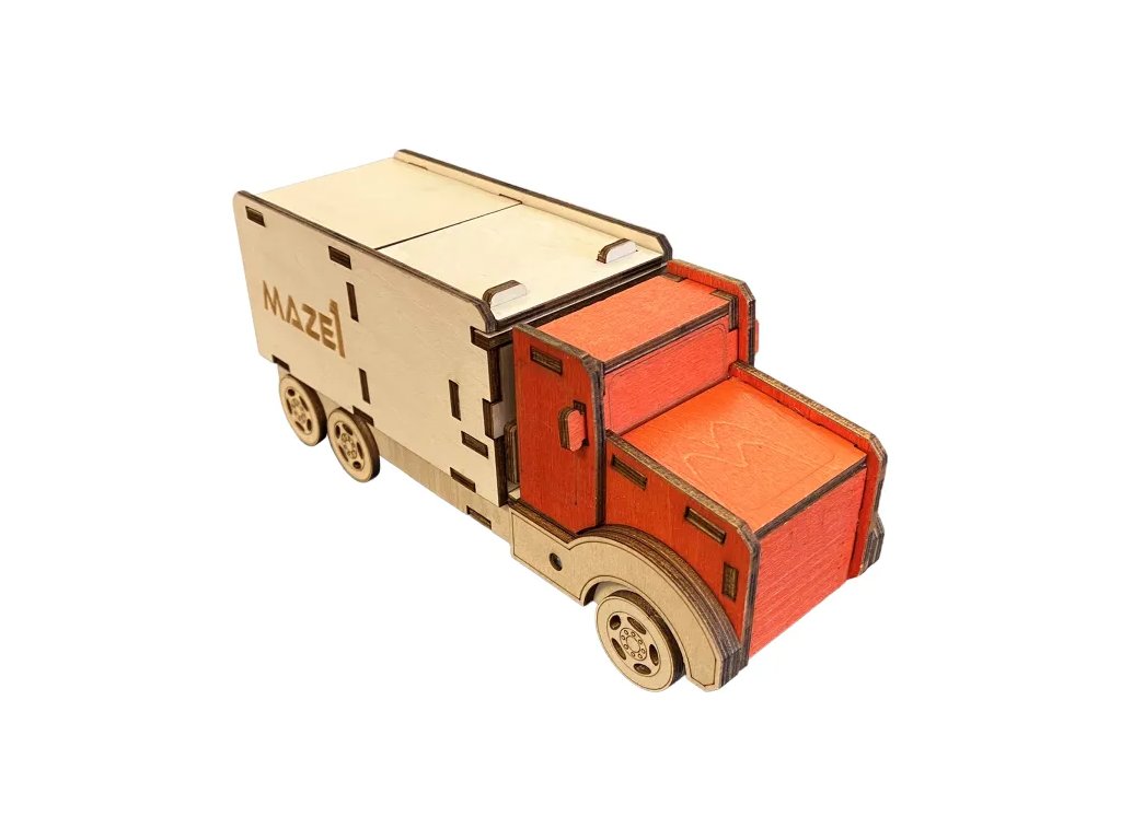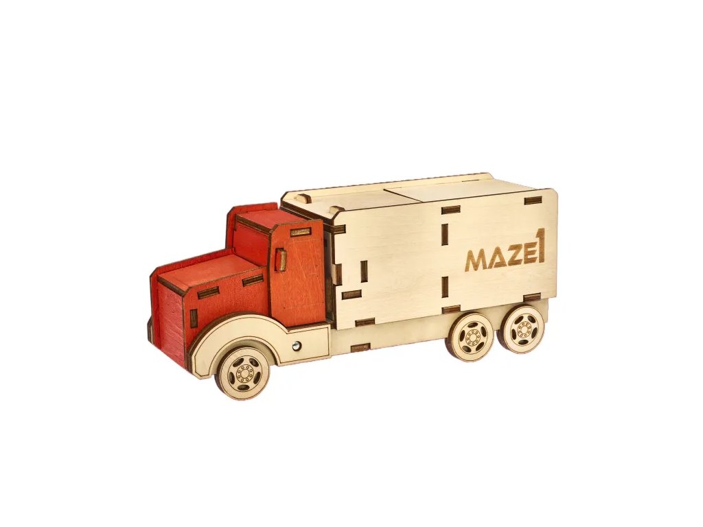 Are you looking for an original way to give money, jewelry, or small valuables as a gift? The puzzle box is not only a beautiful wooden model of a truck, but above all an ingenious 3D puzzle with a hidden compartment.