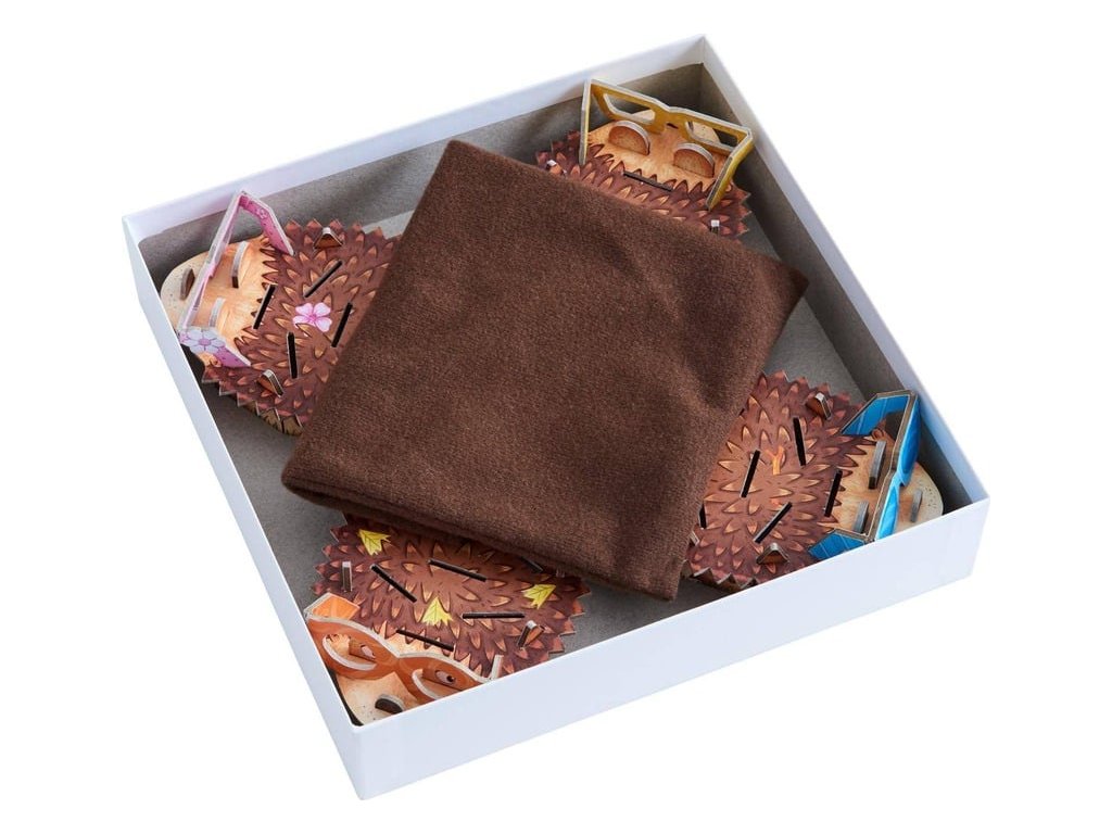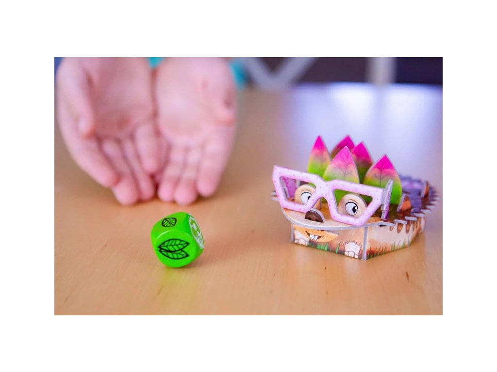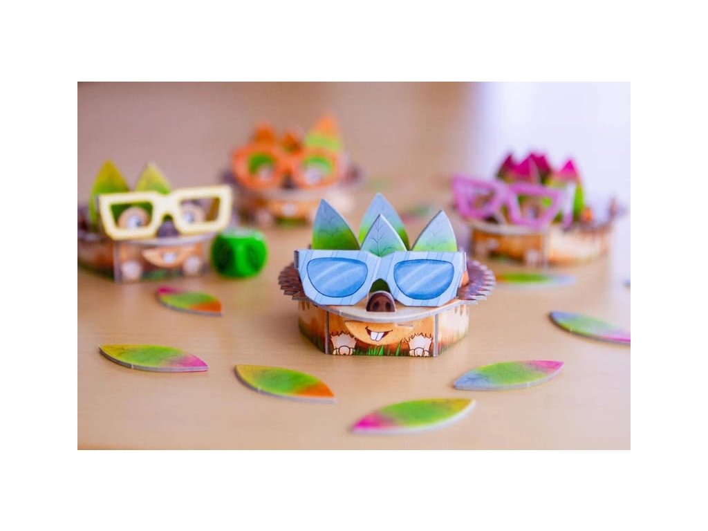 The hedgehog children are playing dress-up. They want to have big spines in their favorite colors. To achieve this, players must pull leaves with the correct colored spikes from a bag of leaves, but be careful! The wind can blow the leaves away, so even the leaves you thought were yours will fly away! The first player to completely decorate their hedgehog with leaves in their color wins the game. A bright and colorful memory game.