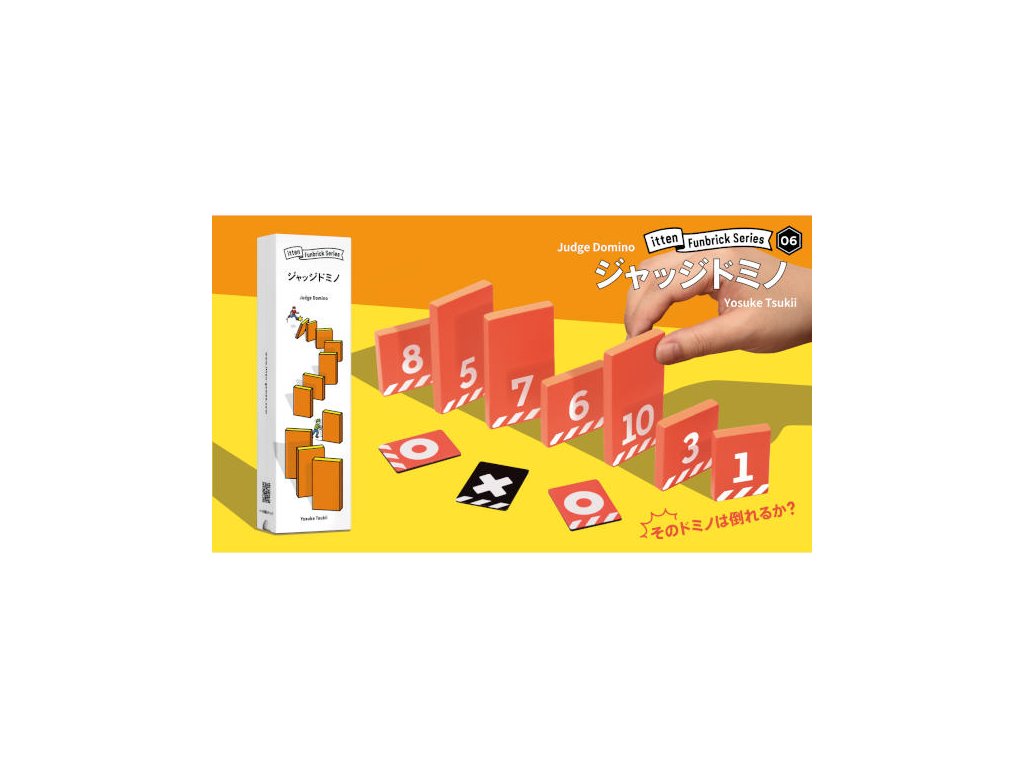 Judge Domino is a game where you decide whether toppling dominoes will succeed or fail. Players try to line up the dominoes in such a way that the domino toppling is successful, but in order to earn points they must make someone think the domino toppling will fail. Will your dominoes be able to sway all the judges?