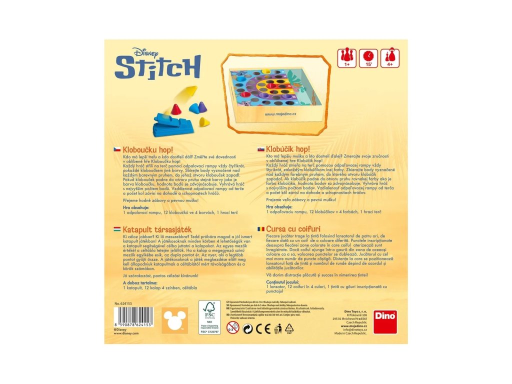 Hats off! A popular retro game with a new design based on the popular Stitch license. Fly through space with the mischievous and crazy Stitch and his friend Angel, and practice your aim, dexterity, motor skills, and counting at the same time. Each hat in the target counts, and if you manage to place the color of the hat in the same color in the target, you get double the points. Thanks to the stable launch ramp, children from 4 years of age can play. Who will hit all the hats in the target? Play by yourself or measure your skills against your friends. Age 4+