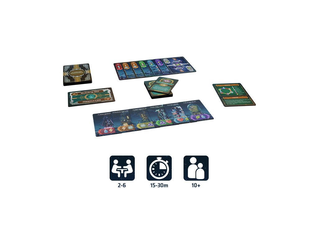 Compete to shape the skyline of a lunar metropolis in this fast-paced, 2-6 player trick-taking game featuring double-suited cards!