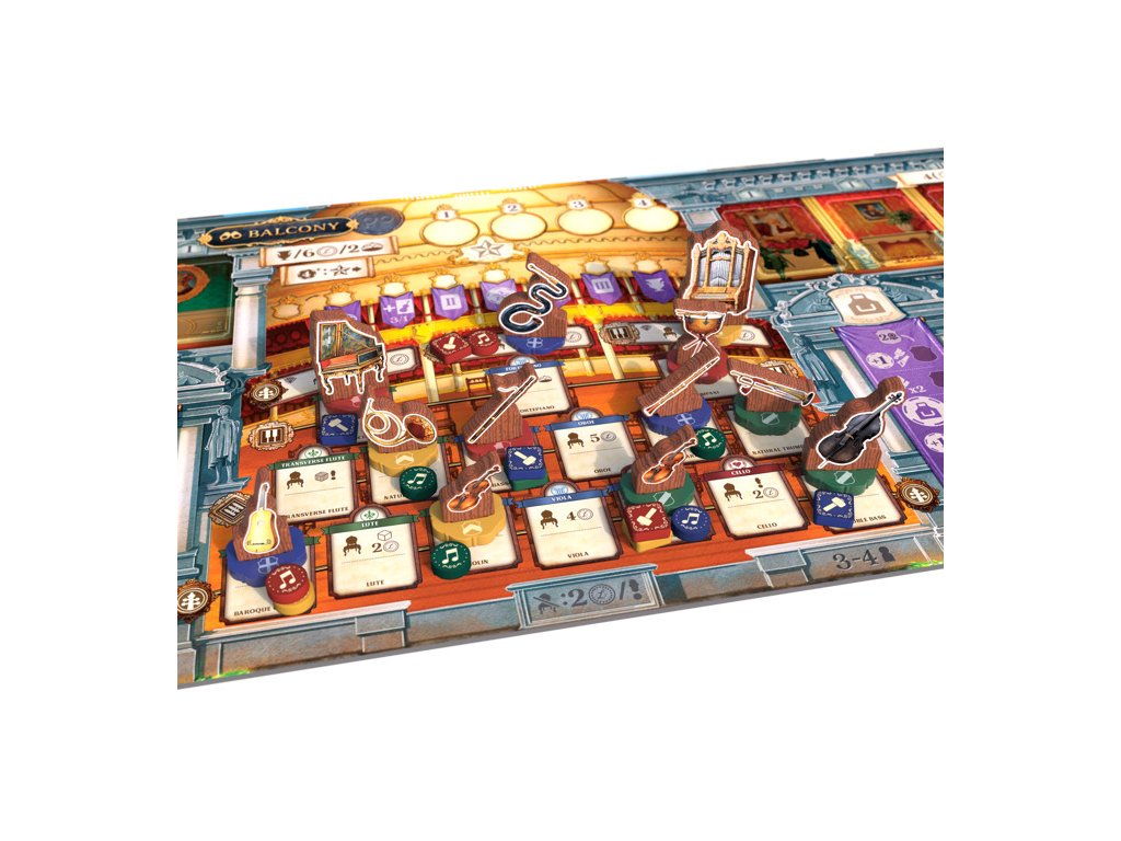 Using a new, unique combination of hidden bidding and worker placement, players manage resources to craft various musical instruments in their workshop, while also courting actual historic patrons through an ever-changing personal tableau of actions and bonuses. Each player chooses how to balance improving skills across multiple tracks, unlocking specialized worker abilities and other bonuses. The choice to concentrate on varying gameplay strategies and goals, such as musical performances, instrument building and repairs, apprentice training and workshop expansion, and overall reputation as an instrument maker, provide multiple paths to victory.