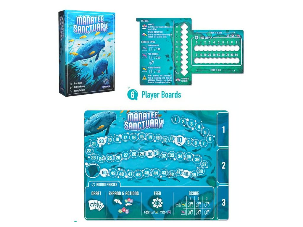 Manatee Sanctuary comes with multiple modules and play option for family's and hobby board gamers alike!