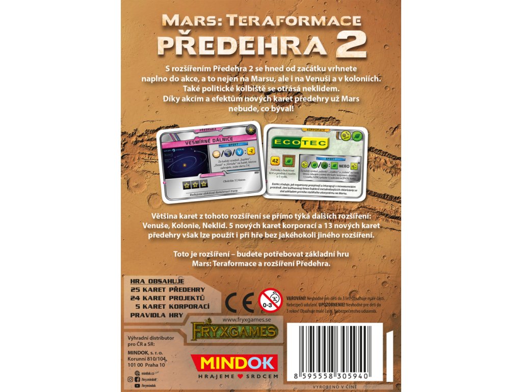 Terraforming Mars: Prelude 2, the sixth expansion for Terraforming Mars, focuses on cross-expansion effects, prelude cards with ongoing effects and actions, and more project cards for your tableau...not to mention five new corporations.