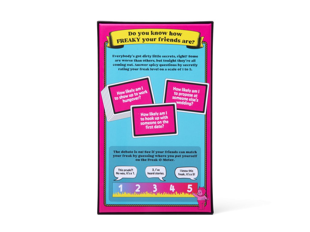 Secretly rate yourself on the Freak-O-Meter, then see if your friends can guess how freaky you really are. Perfect for game night, parties, and couples, this fun adult game is the best gift for anyone who loves to laugh and doesn’t mind being in the hot seat.