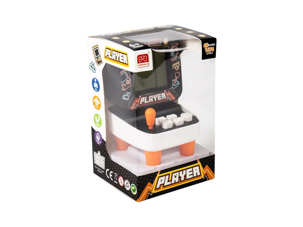 This classic game console in a compact design offers 4 game modes and up to 999 levels.