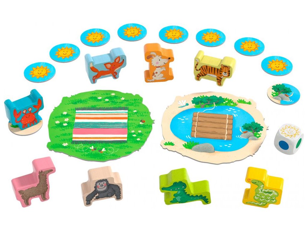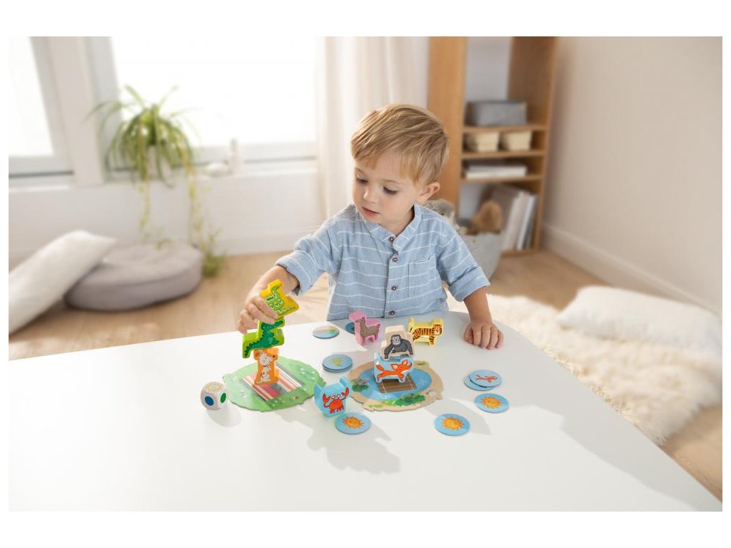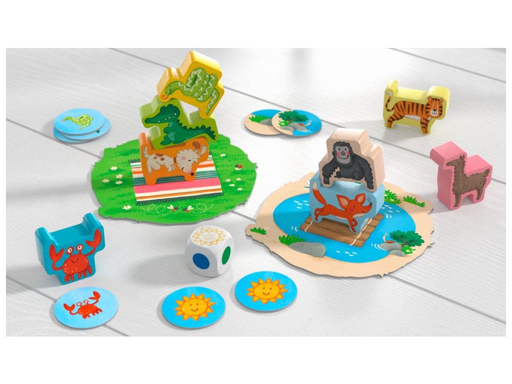 Hráči skládají zvířátka za zvířátky ve třech nových hrách pro nejmenší hráče. Ve třetí hře spolupracují v boji proti krabem. Ať vyhraje nejlepší hráč! Dřevěné vratké zvířátka jsou velkou zábavou v této stohovací hře pro nejmladší dětičky. Hra podporuje rozvoj motoriky.