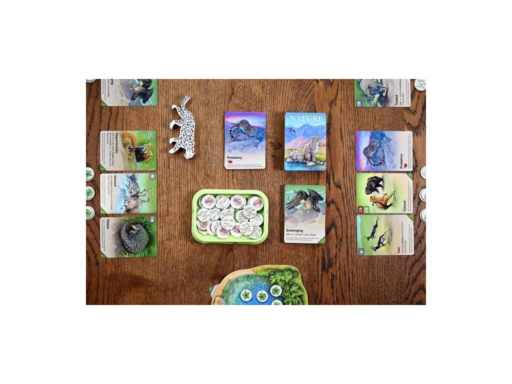 Nature refines Evolution with insights gained by the development team over the past decade. Nature has been playtested thousands of times to create a new game that is easier to teach, more forgiving, better balanced, and expandable.