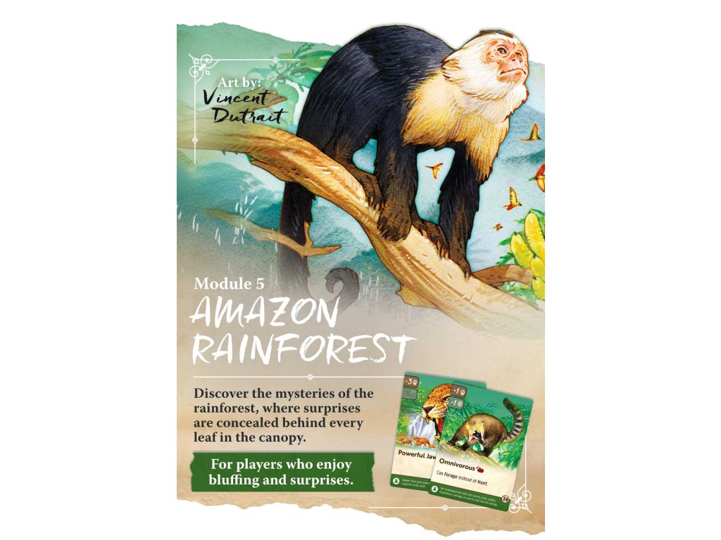 Modules are small expansions that can be combined to dramatically change the gameplay. Flight, Jurassic, Arctic Tundra, and Amazon Rainforest have trait cards that provide new ways to adapt your species, while Natural Disasters comes with an event deck that creates scenarios that effect all players.