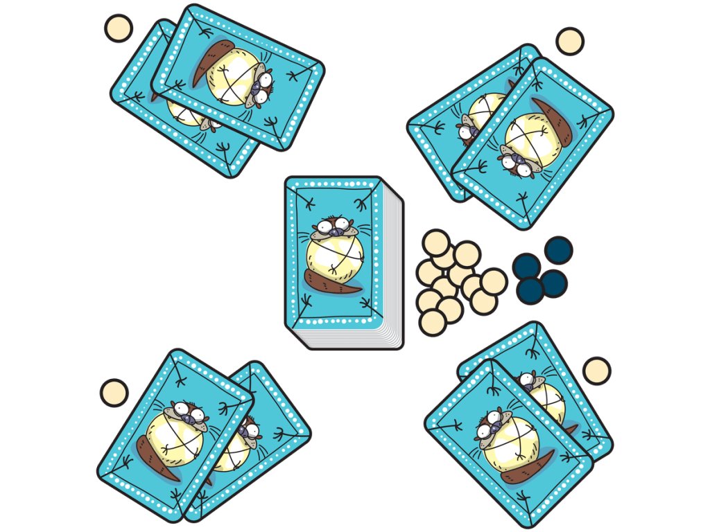 In your turn, pick a card and play one of your cards. Pick pearls, attack other otters, defend yourself and avoid sea urchins. If at the end of your turn you have two sea urchins in your hand, you are out, but you can still win because, at the end, the value of the pearls you have collected counts.