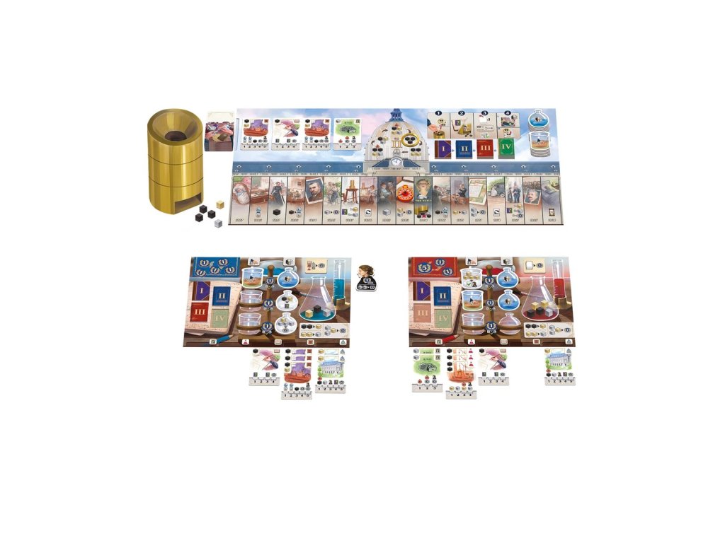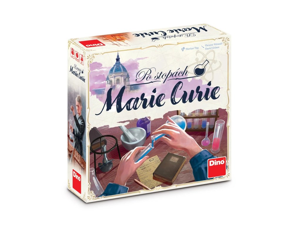 In the Footsteps of Marie Curie is a family game for 2 to 4 players, in which young scientists help the famous scientist with her various research studies on Radium.
