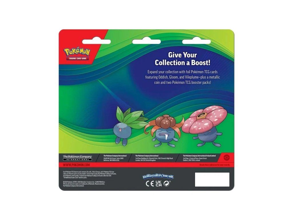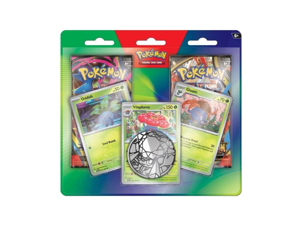 Become a serious trainer and collector with the exclusive Pokémon TCG: Enhanced 2-Pack Blister collection! It focuses on the Legendary Pokémon series and is the perfect set for anyone who wants to get unique promo cards and strengthen their deck. You’ll receive 2 booster packs to expand your collection, a collector’s coin, and three exclusive foil cards featuring Oddish, Gloom, and Vileplume.