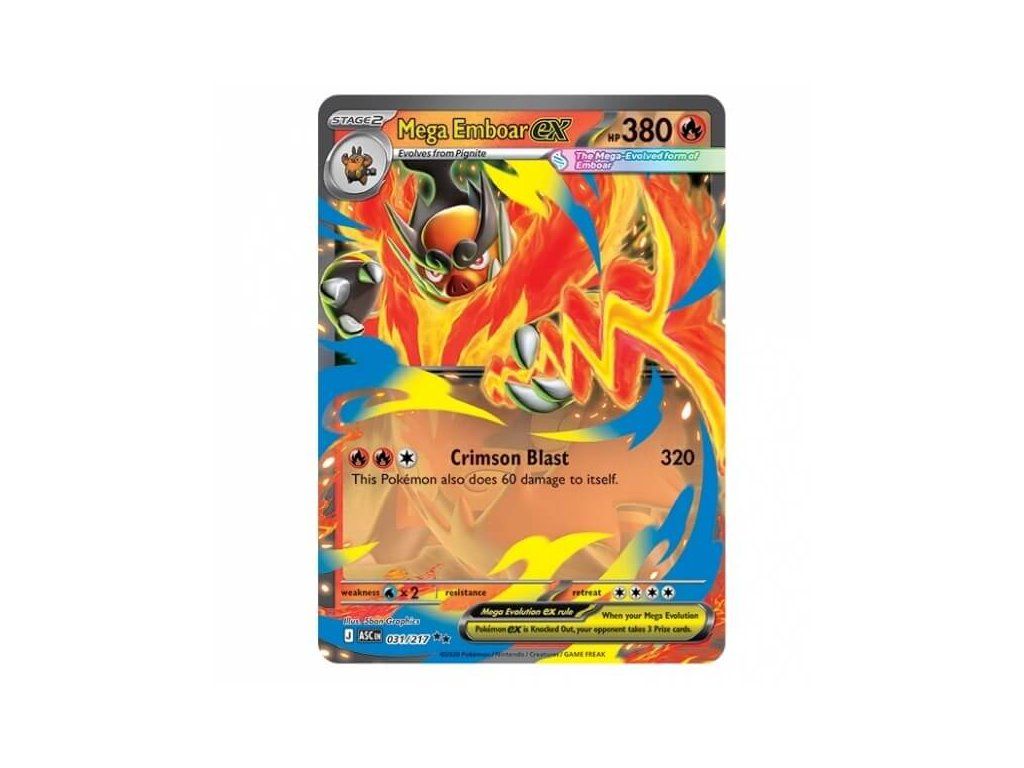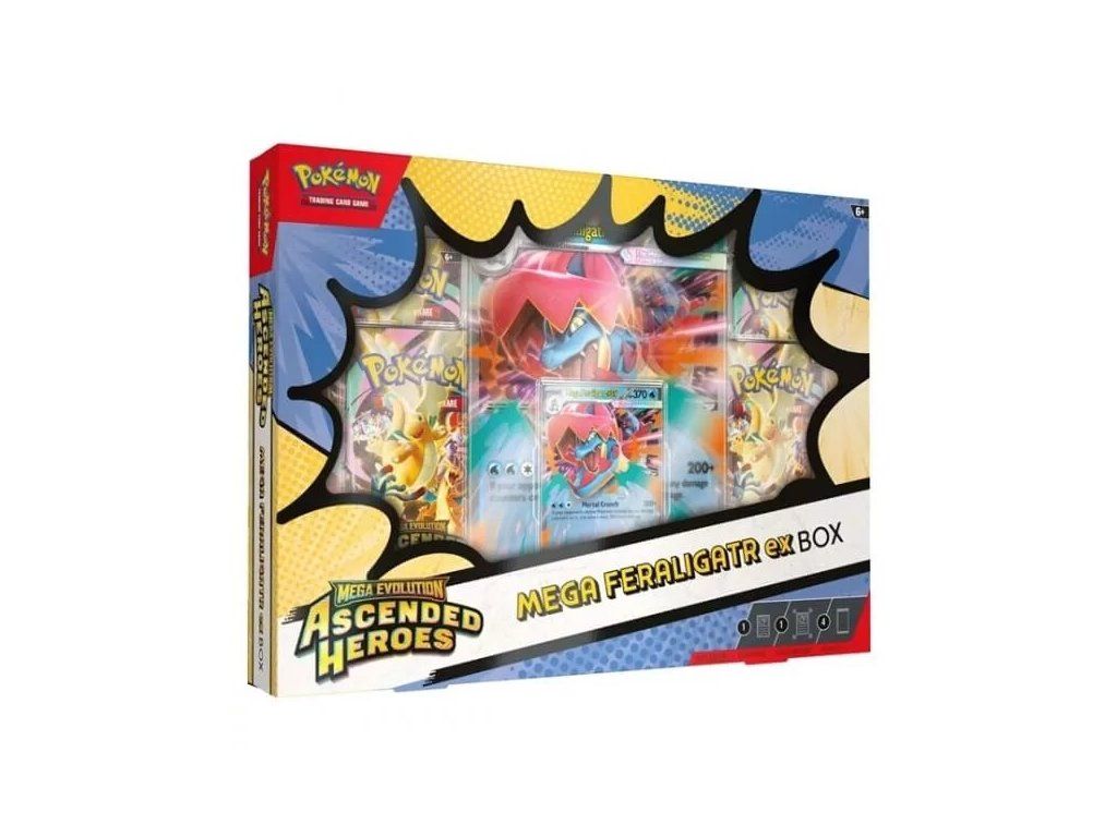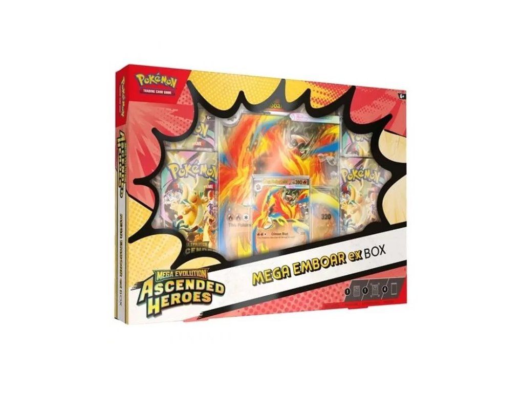 The Pokémon Ascended Heroes EX Box is a special product containing 4 Pokémon booster packs, 1 promo card, and 1 JUMBO card.