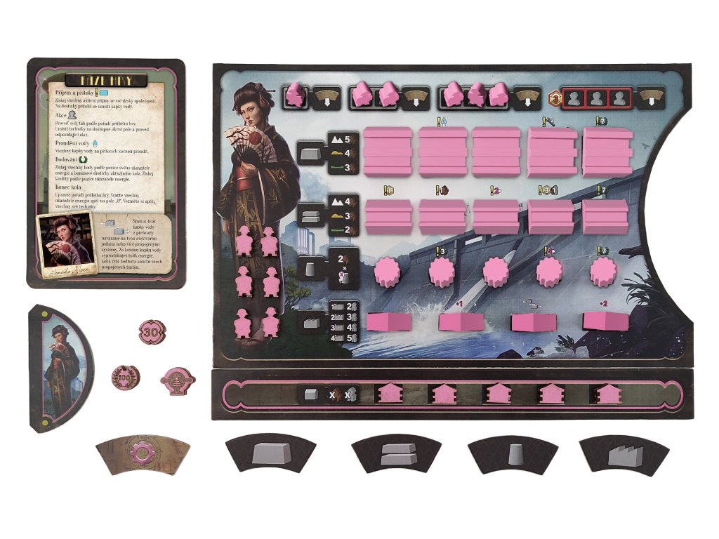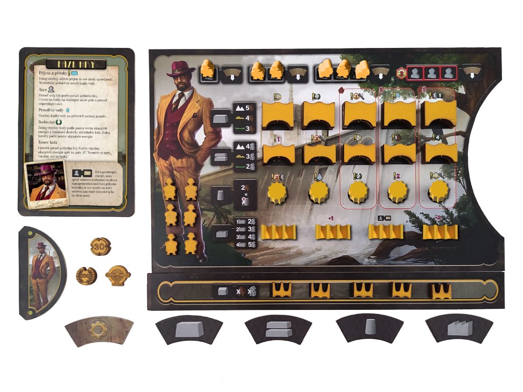 Barrage: The Far Companies expansion includes rules for two new companies to be used in addition to the four base ones and the fifth one already included in The Leeghwater Project expansion. These two companies have unique characteristics that significantly distinguish them from the standard companies both in terms of game mechanics and components.