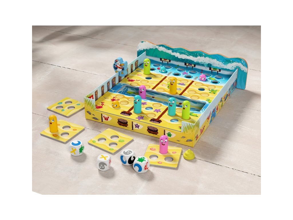 Roll the dice and help your team of worms race to the cliff as fast as possible. But be careful—if you don't hide in your hole in time, the tide will wash you back to the start.