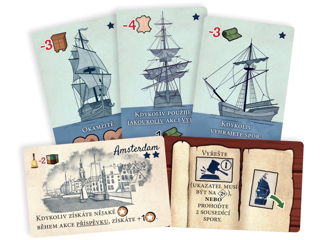 In the game, you can produce goods, build factories, purchase ships, and form alliances with cities that bring you lasting benefits. When you can't agree amicably, lawsuits ensue, the course of which is influenced by your investments and your willingness to take risks. Whoever seizes the opportunity and achieves dominance in their chosen area will become the winner – whether through influence, trade, or intrigue.