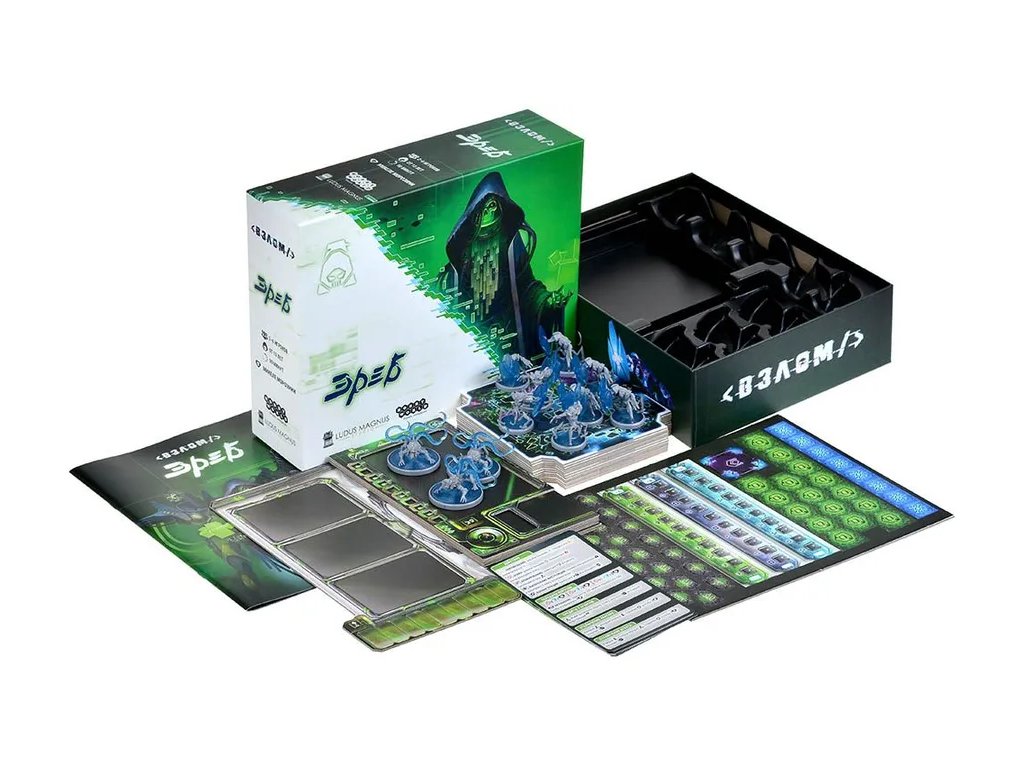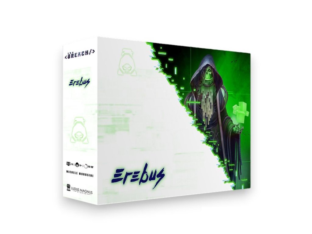 The Breach is a competitive Net Crawler game for 1-4 players, lasting approximately 25 minutes per player, where they attempt to breach the Gene.sys database to steal secret information. Each player is a Breacher, a digital rebel, guided by their ideals or by their Faction interests.