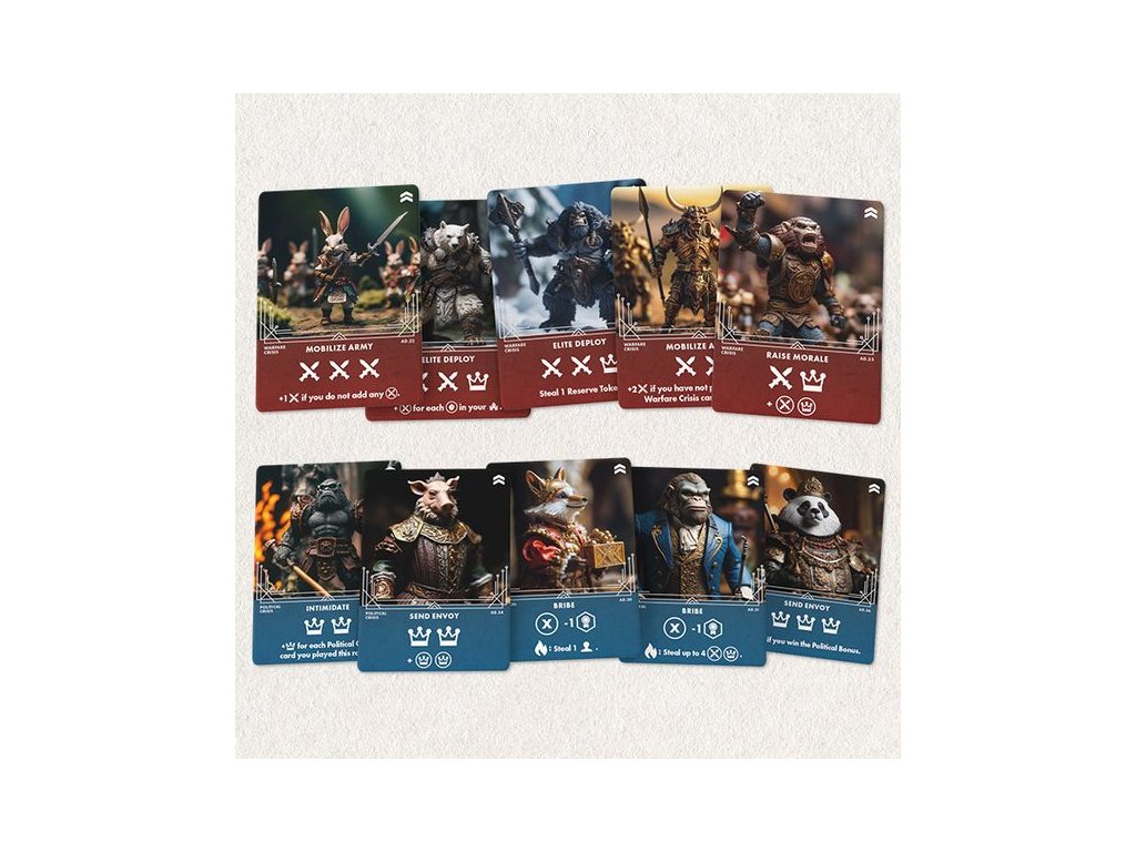 The Queen's New Capital is an engaging deck-building city-development board game with a fast-paced gameplay experience, featuring an animal world inspired by stop-motion art. Players assume the roles of provincial governors, competing to have their respective regions chosen as the Queen's new capital. To secure victory in this contest, they must utilize all their resources and seek assistance whenever possible.