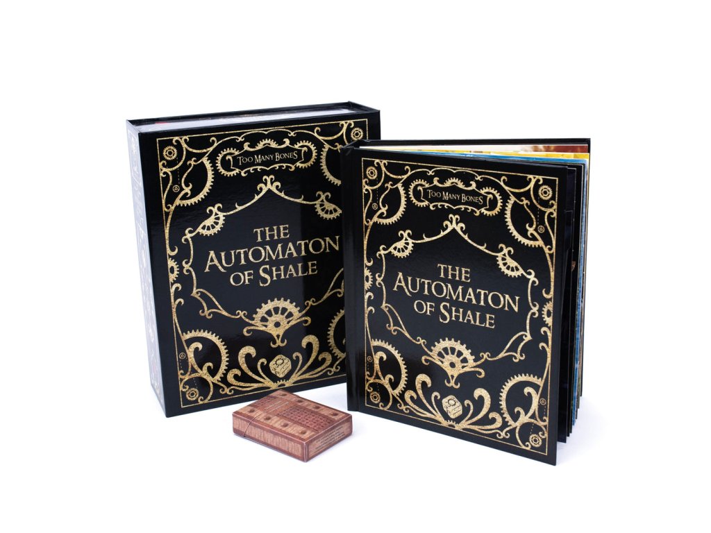 You may have thought that pop-up books were old hat, but this is an entirely new thing to put on your head! The Automaton of Shale contains a unique Too Many Bones adventure with new Encounters, Baddies, and Loot. Something else lurks at the end of the adventure, too…