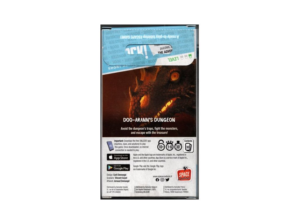 Rediscover the pleasure of the game Unlock! in a shorter version, but still just as thrilling! Avoid the traps of the dungeon, fight the monsters and leave with the treasure!