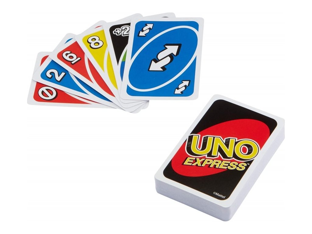 UNO Express offers all the fun of UNO, but with faster gameplay that allows players to finish rounds more quickly! The smaller 56-card deck makes this version of UNO portable and easy to take on the go. And when you have one card left, don't forget to shout "UNO!" A great gift for UNO fans and card game lovers ages 7 and up. Colors and decorations may vary.