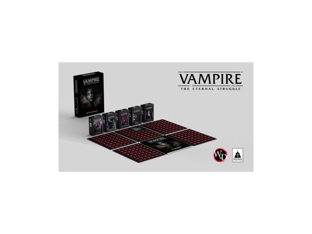 Sběratelská hra Vampire Eternal Struggle je již v páté edici a toto je její základní sada s pěti balíčky, každým o 89 kartách.