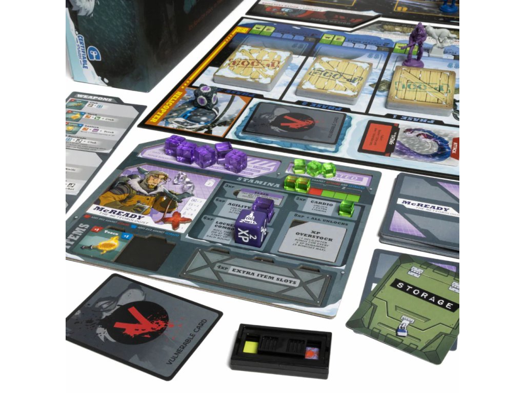 Who Goes There? is a cooperative game of growing paranoia. At the beginning of the game, all players are human and there is no reason not to trust each other completely, but as the temperature drops and mistakes are made, players start doubting everything and everyone around them.