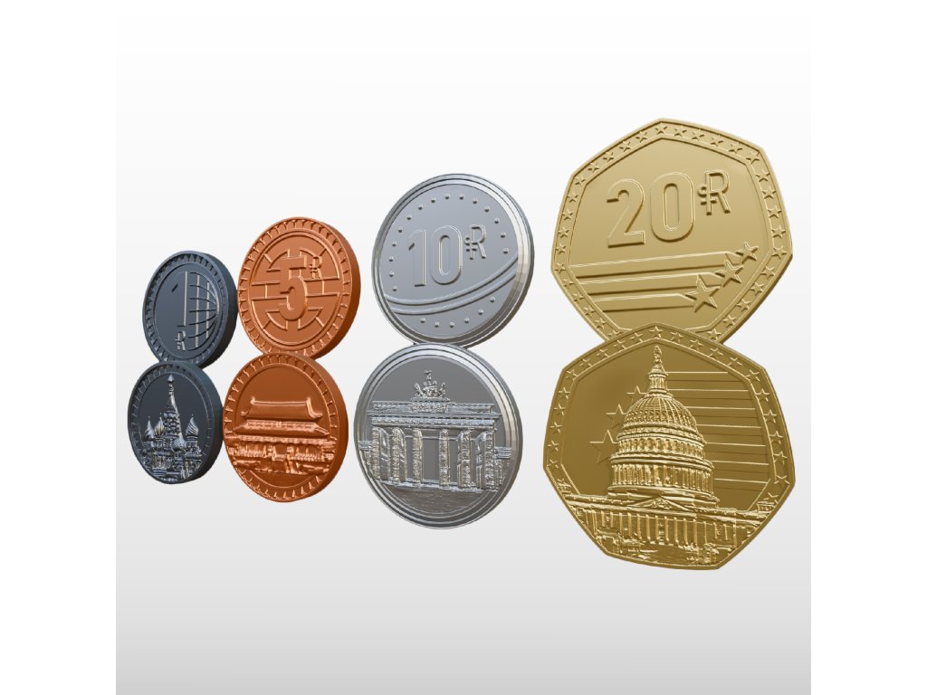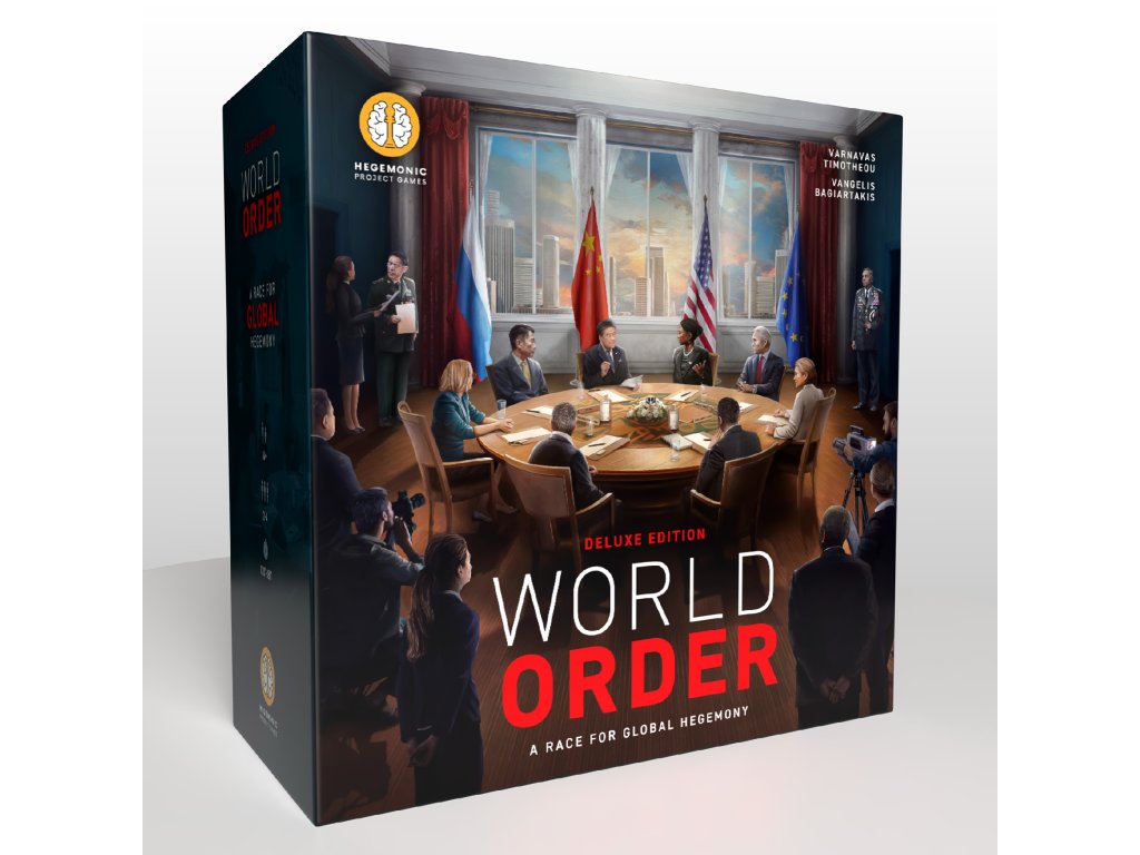 The board game World Order simulates modern international relations, with players taking control of one of the four dominant global powers of the 2010s: the United States of America, the People's Republic of China, the Russian Federation, and the European Union. Utilize your diplomatic power, economic strength, and military might to expand your influence across the globe. Form regional alliances, entice other nations through clever economic dependencies, or become the military juggernaut no one dares to mess with.