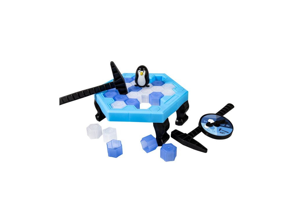 The Save the Penguin game includes: game frame, 38 ice cubes, spinning wheel, penguin figure, 2 hammers.
