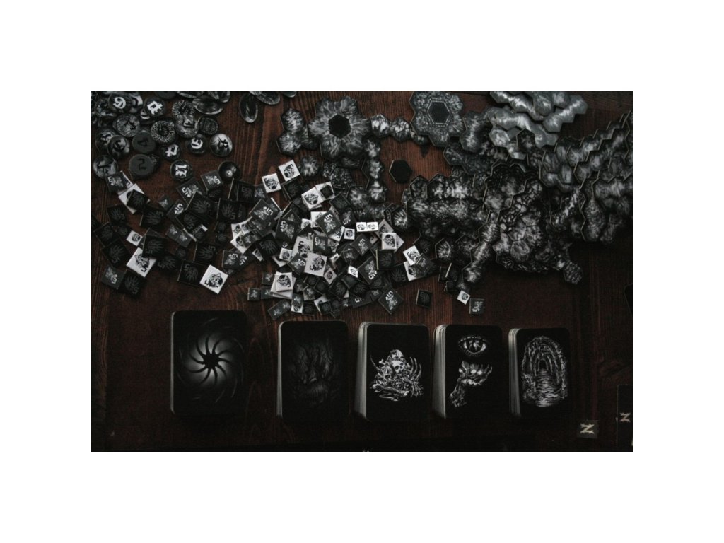 - Karty. Ve hře je neskutečné množství karet (téměř 350!). Jednak máte zaručeno, že bude každá hra jiná a pak je zajímavé, že při vyvolávání dobíráte karty z některého z balíčků dle zvolené suroviny, ale mimo karet příšer se v každém z balíčků (dokonce i v balíčku hloubení chodeb) nacházejí různé události, které při dobírání dáváte stranou a poté je všechny najednou vyhodnotíte. Události většinou nejsou ani dobré ani špatné – záleží na situaci. Může se jednat o vynoření se dalších neutrálních příšer, přesun příšer, výskyt surovin, nebo se může objevit nějaká dávno ztracená část jeskyně. Události zkrátka zajišťují to, že se v jeskyních pořád něco děje