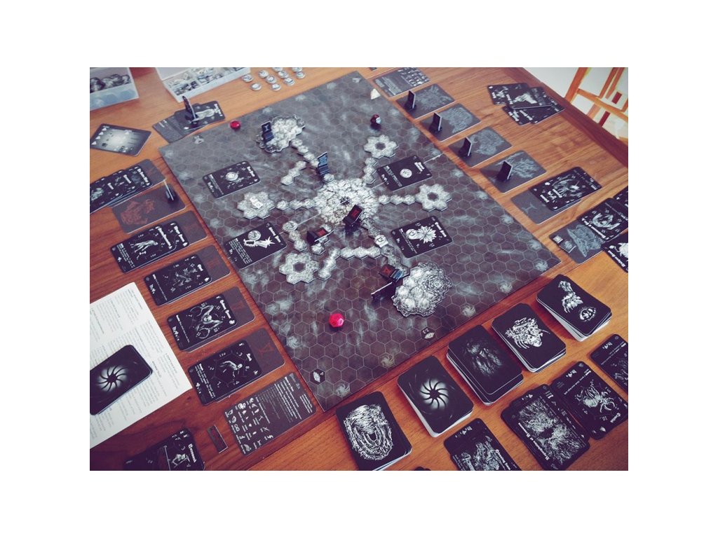 - Vítězství. Hra končí eliminací všech nepřátel, ale aby bylo zabráněno nekonečnému lelkování nekromantů ve svých doupatech, je ve hře zakomponován časovač. Ten je proveden tak, že na začátku hry se náhodně vybere jedna z pěti karet nekonečného zla, která je prozatím umístěna skrytě vedle herního plánu. Kolem mapy je stupnice, na kterou se umístí žeton „krvavého oka“ a ten se posune, pokaždé když někdo vyvolá příšeru a/nebo na konci každého kola. V určitém okamžiku se odhalí karta nekonečného zla (nějaká potvora, kterou svět neviděl) a hráči mají ještě nějaký čas na přípravu na podmínky vítězství dané touto kartou. A podmínky jsou velmi různorodé. Přes eliminaci právě vynořeného nekonečného zla z Jámy, po skok do Jámy samotné.