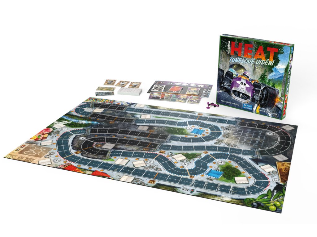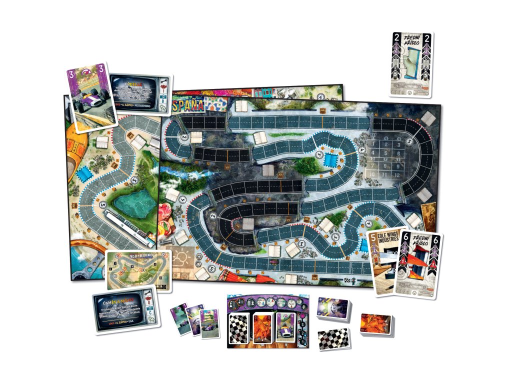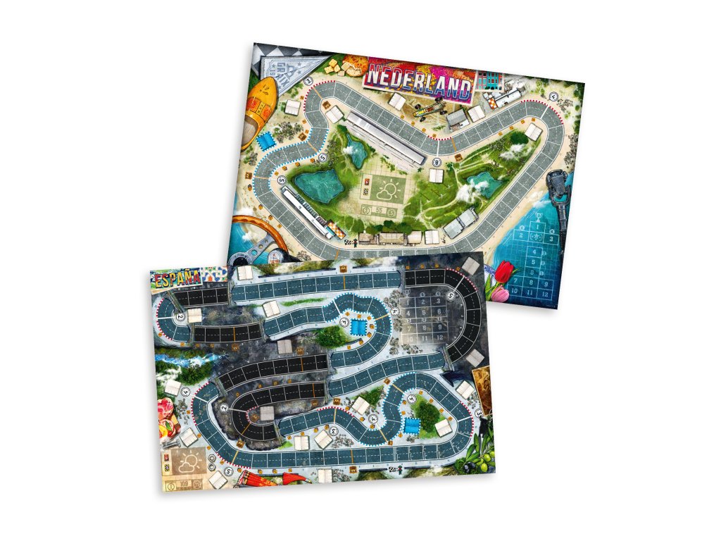 This second expansion brings chicanes and tunnels for more technical and high-intensity races, front wing upgrade cards, and new event cards, in addition to expanding the player count to seven (or eight with the Heavy Rain expansion).