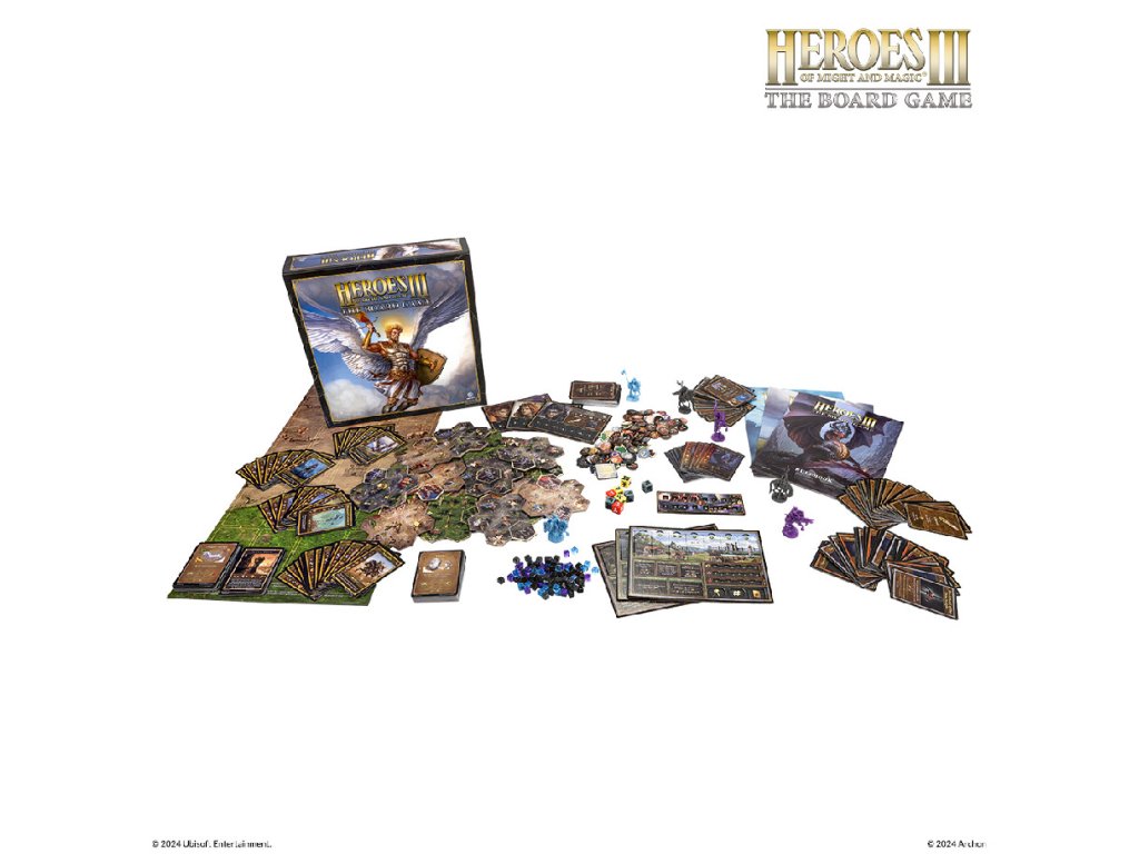 Heroes of Might & Magic III: The Board Game is an adventure-driven strategy game for 1-3 players set in the cult fantasy universe. The game includes competitive, cooperative, and solo scenarios to battle and explore your way through. The adventure maps will be represented by tiles, with each tile divided into seven hexagonal fields.
