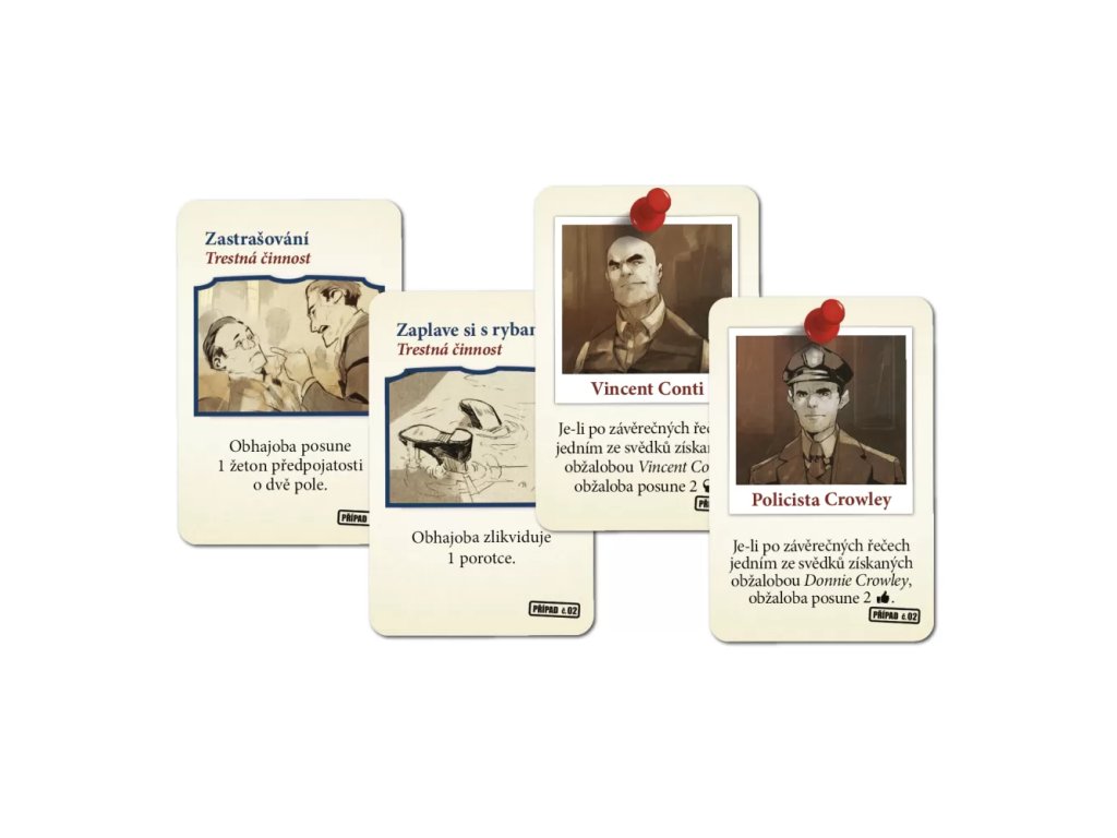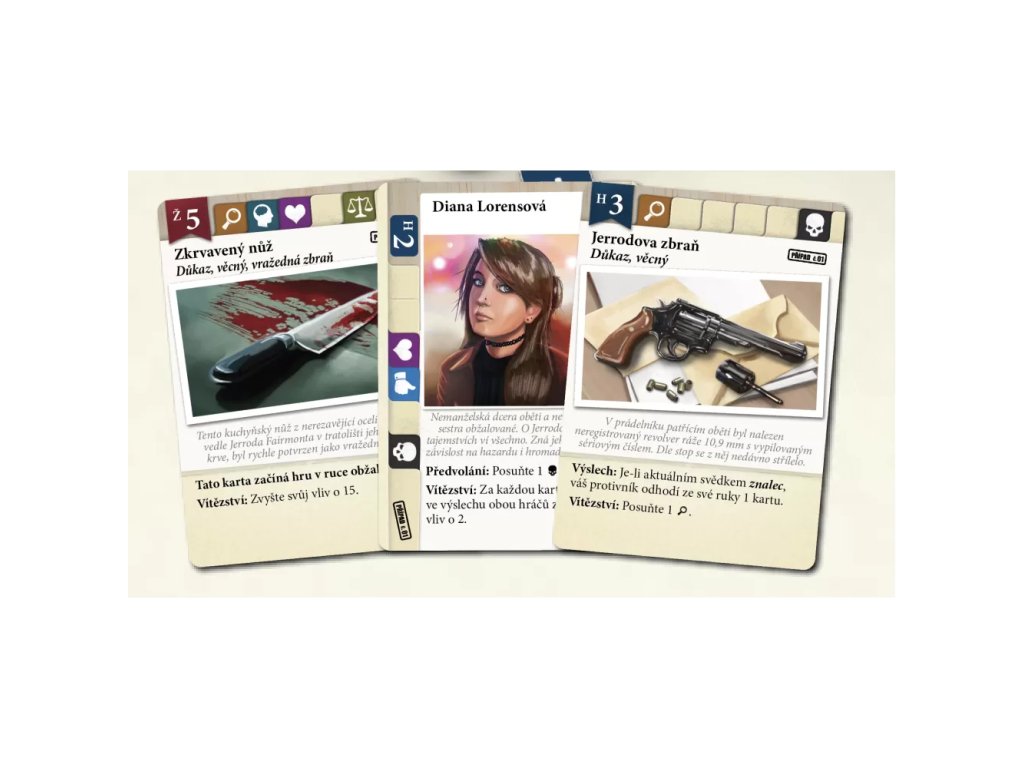 The Czech version of the game brings Season 1 in a common box. Each case has its own deck of cards and witnesses, and there are minor adjustments to the basic rules in each case.