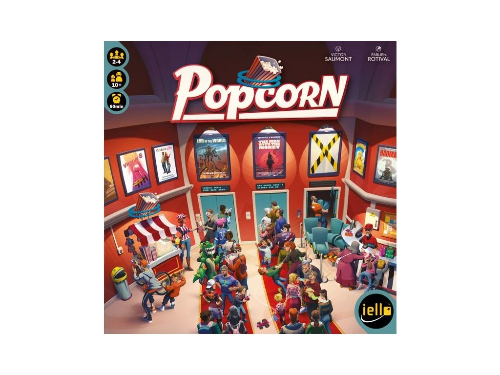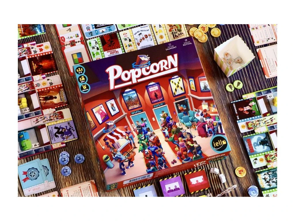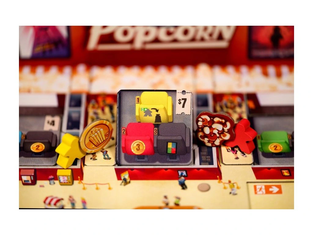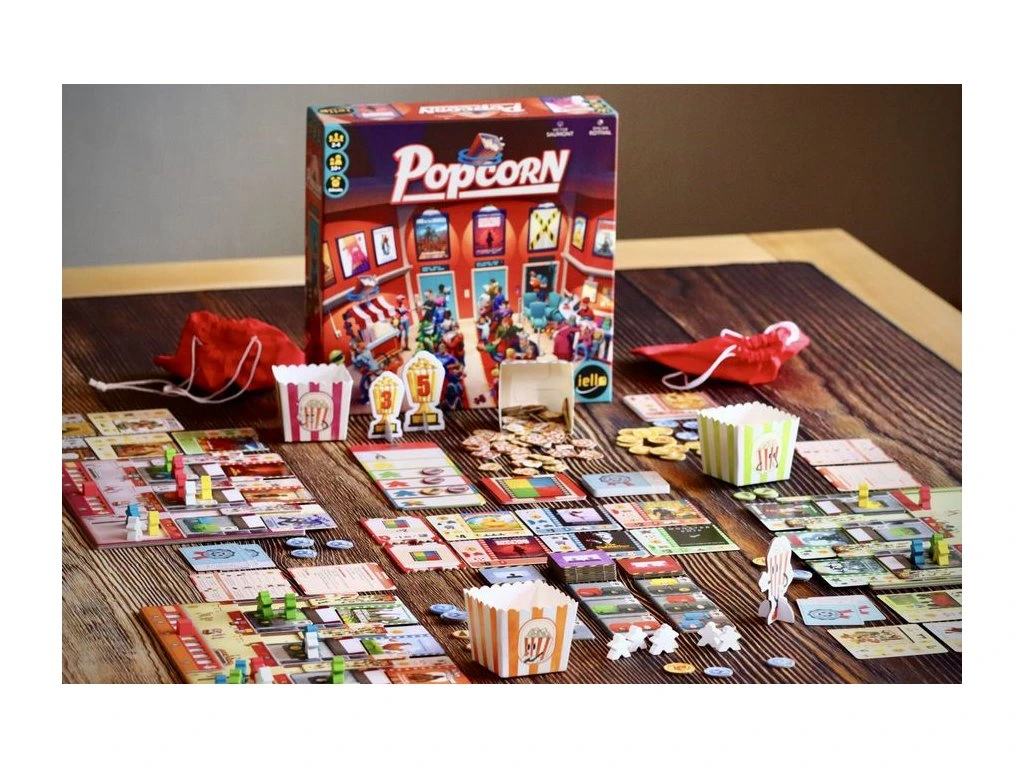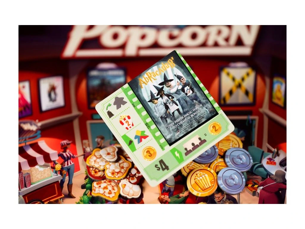In Popcorn, each player manages their own movie theater and tries to show the best combination of movies in order to attract guests to their seats.