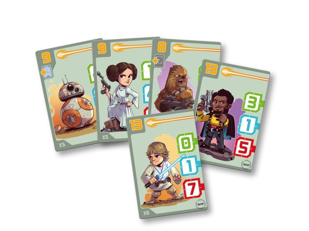 Target cards have defense values, while hunter and droid cards have attack values. To capture a target, players must equal or exceed the target’s defense values by placing hunter and droid cards in front of their targets. Once a target is defeated, it is placed horizontally.