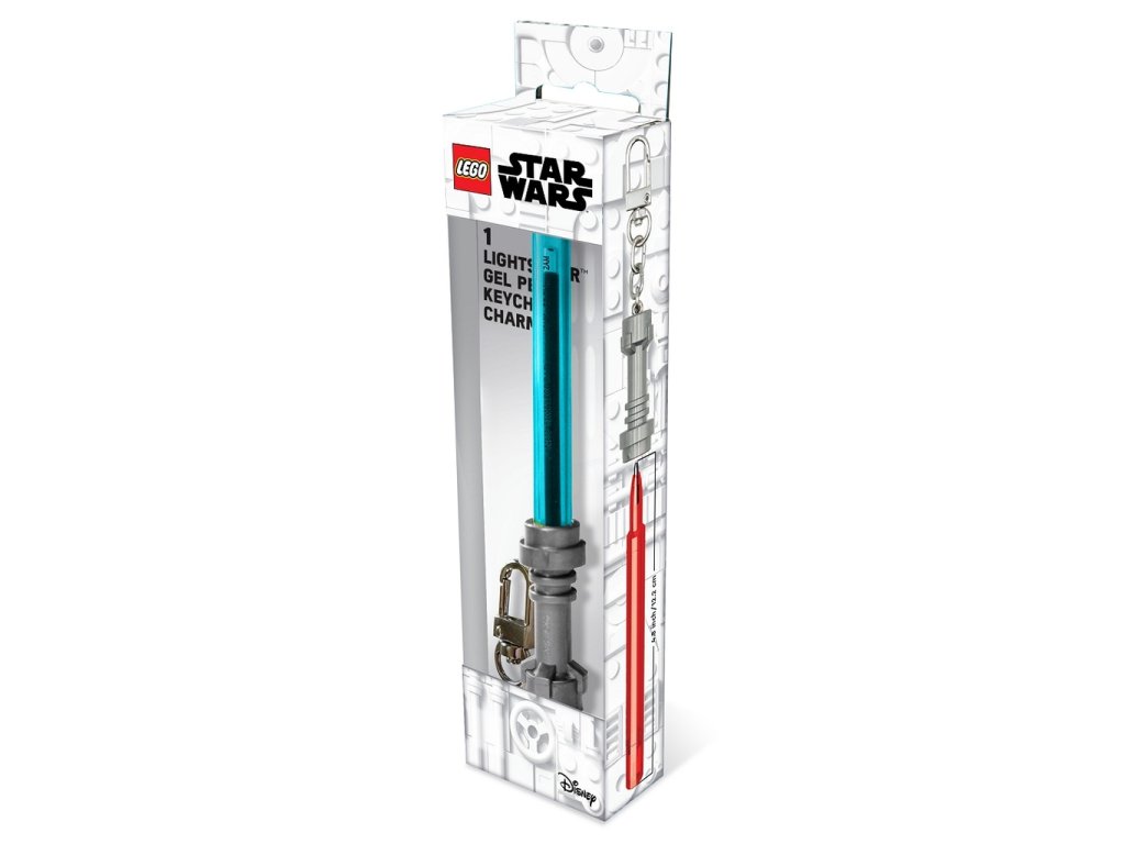 The stylish LEGO Star Wars gel pen in the shape of the legendary lightsaber turns every note into a small galactic experience. It combines precise, smooth writing with the iconic design from the Star Wars movie saga, delighting fans of all generations. Thanks to the practical pendant, you can easily attach it to your keys, backpack, or bag—so your lightsaber will always be at hand. The ink color matches the color of the sword, 0.7 mm tip.
