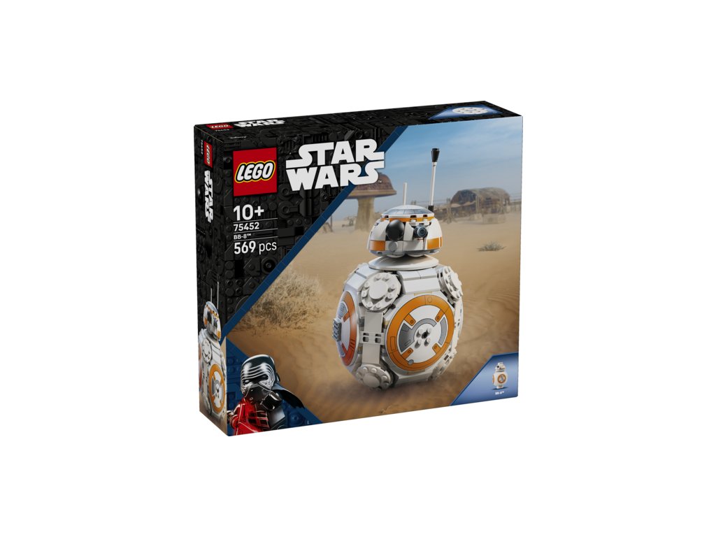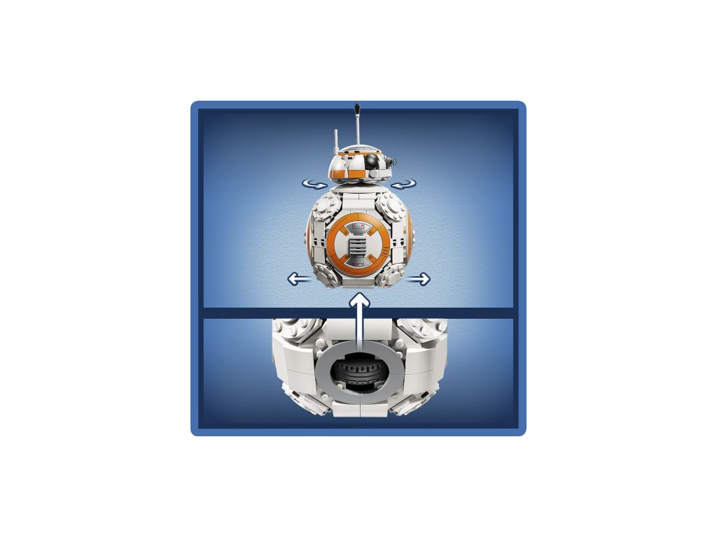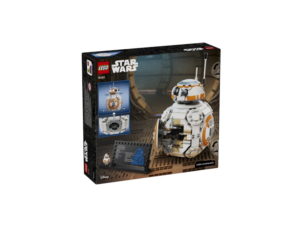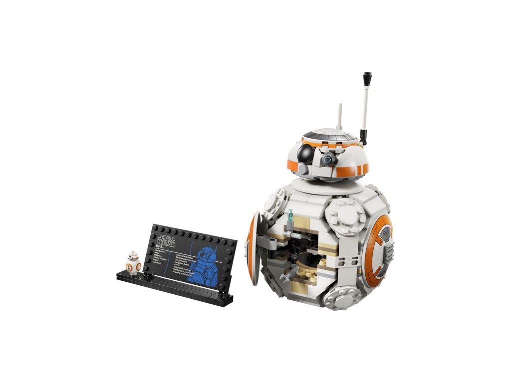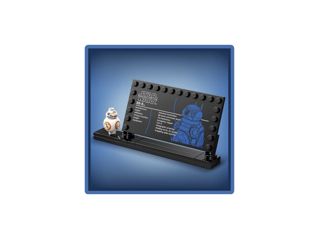 - BB-8 LEGO® FIGURE – Display the main buildable toy model with the BB-8 info plaque and standard-size BB-8 LEGO figure