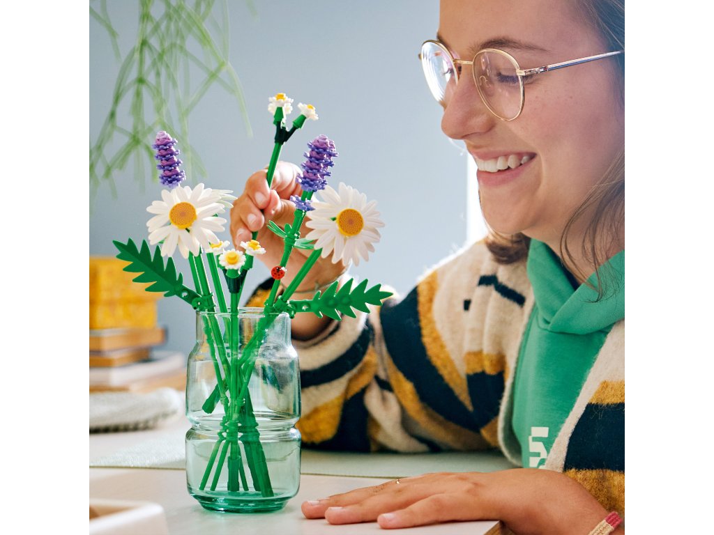 LEGO® FLOWER BOUQUET – Budding florists will have fun building 3 large daisies, 2 stems of small daisies, 3 calming sprigs of lavender and vibrant green stems
