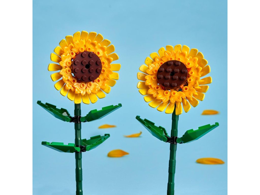 - Build a sunflower display – Create a display piece for any room with the colorful LEGO® Sunflowers (40524) building kit. Includes 2 sunflower blooms with adjustable green stems and leaves