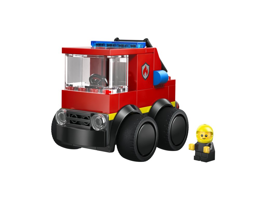 FIREFIGHTER JUNIOR MINIFIGURE – Kids can pop the mini firefighter into the driver’s seat before setting out on exciting fire rescue missions