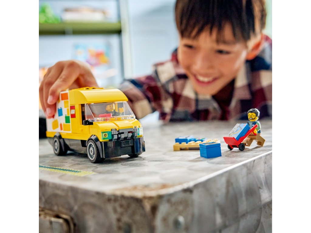 Deliver endless hours of fun with LEGO® City: The LEGO Van (60500) toy truck building kit for ages 6+. Kids can fold up the sides of the delivery van to access its cargo area, lift the bonnet to view the engine bay and open the rear doors. The set also includes a hand trolley, a pallet and 4 miniature toy LEGO boxes, plus driver and worker minifigures for imaginative play.