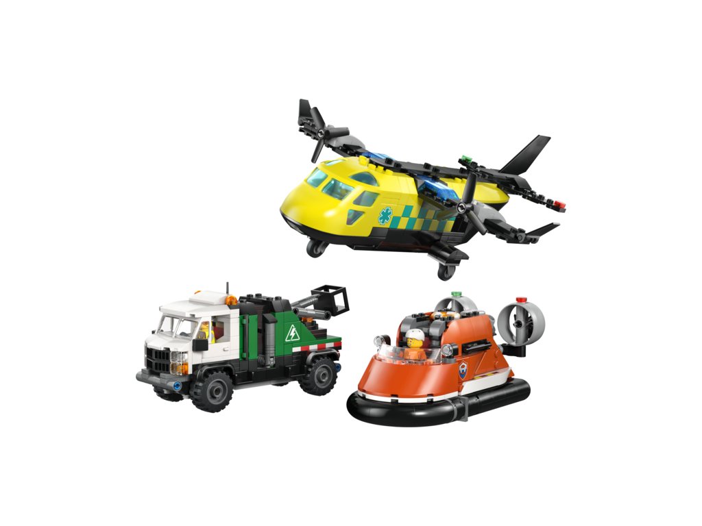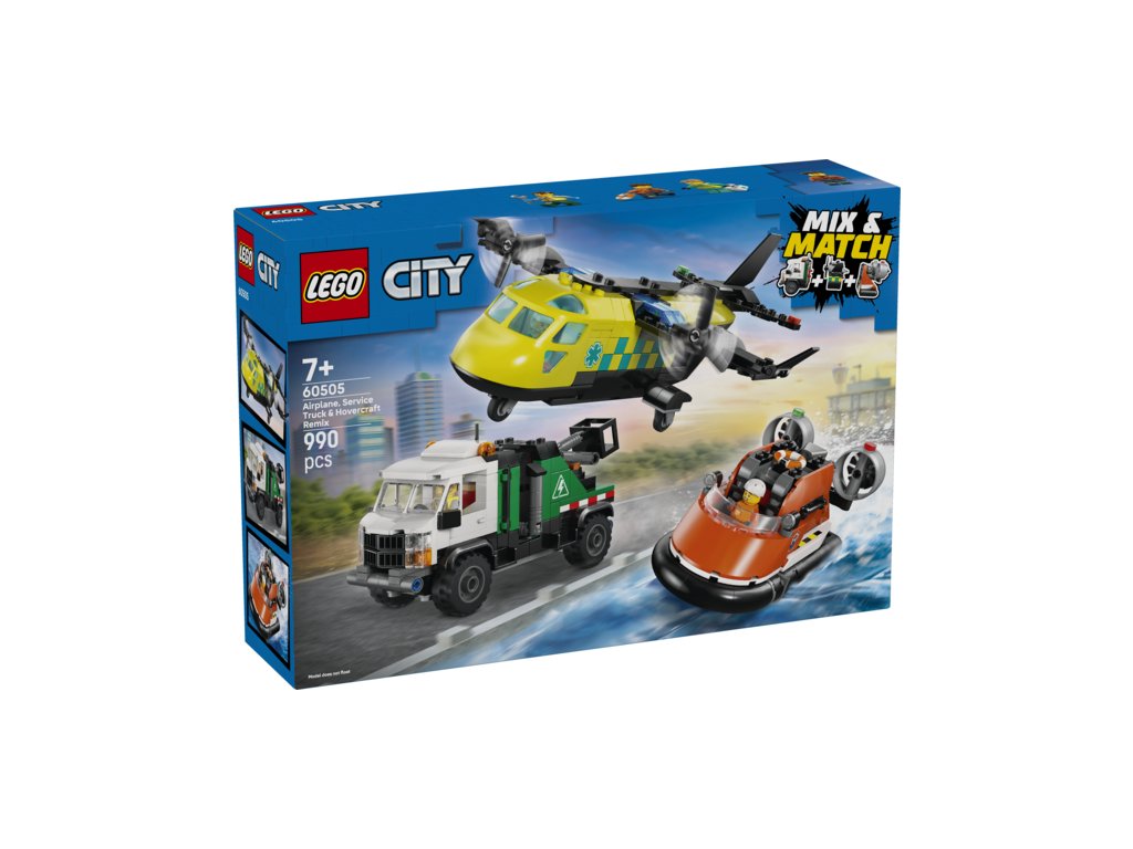 3 EMERGENCY VEHICLE TOYS IN 1 SET – The LEGO® City Airplane, Service Truck & Hovercraft Remix (60505) is a pretend play set with 3 mix and match rescue vehicles for ages 7 and up
