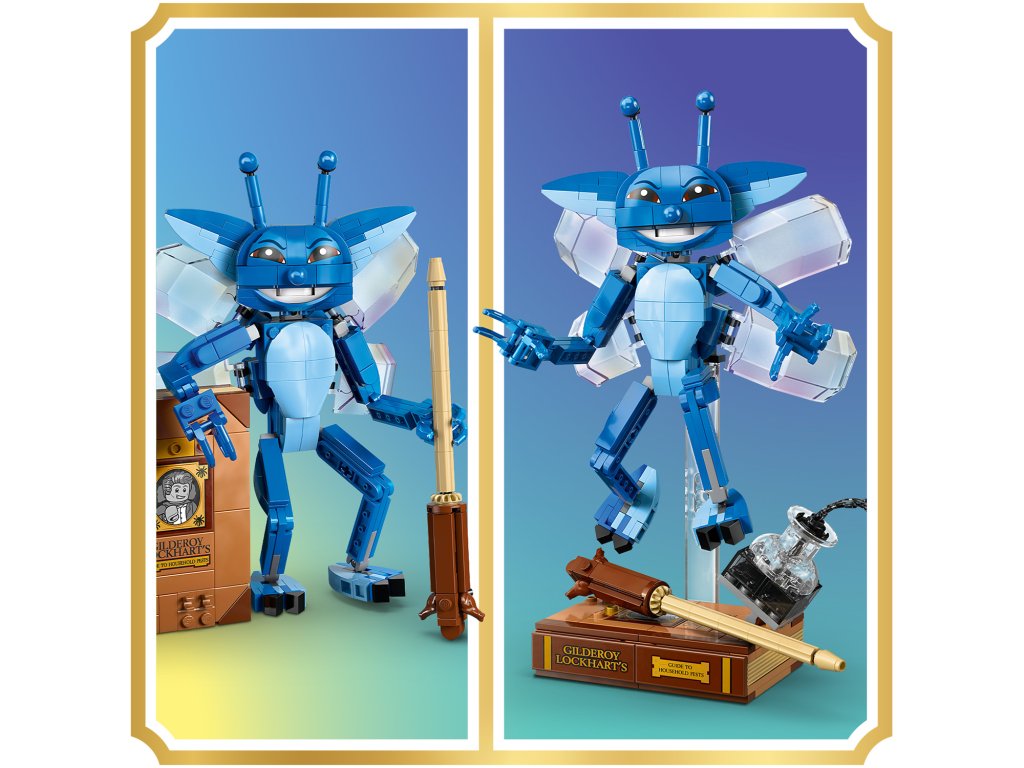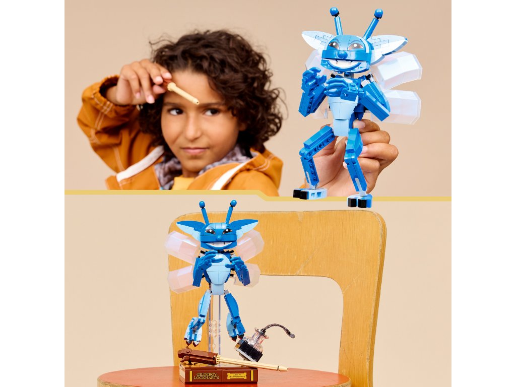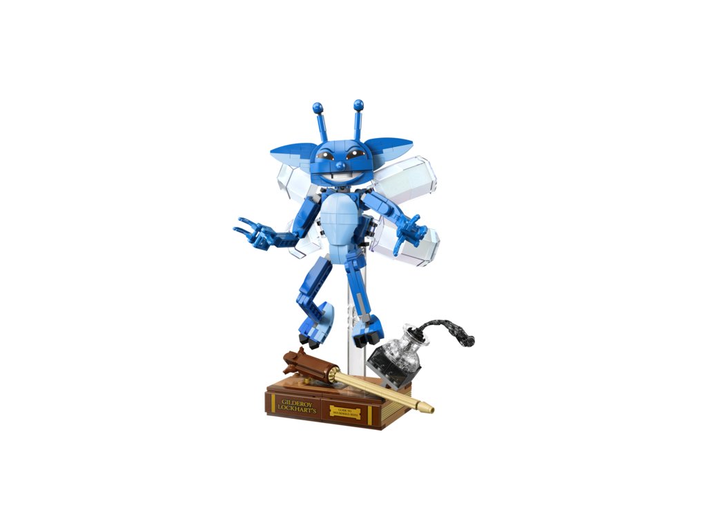 Pose the Cornish Pixie in flying position on the transparent display stand, or pose it in a standing position and play with it on its own. This building toy for kids also comes with iconic accessories: display the Cornish Pixie figure with the buildable Gilderoy Lockhart™ book and bottle of ink that’s spilling over.