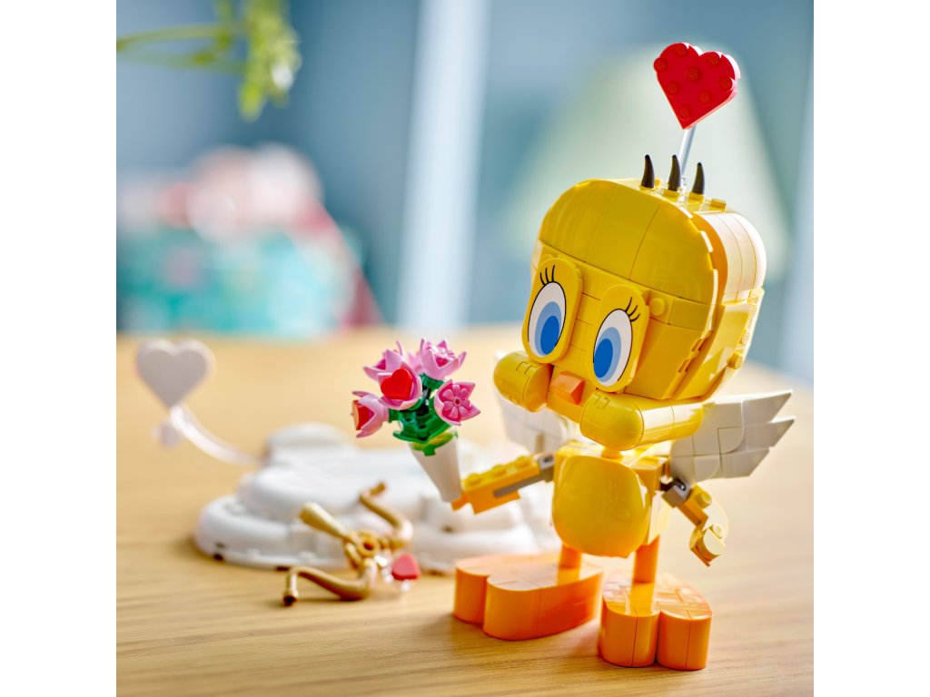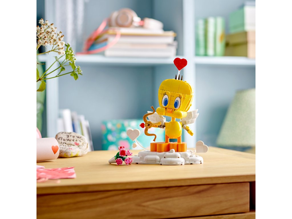 Style Tweety as Cupid by placing him on his cloud with the bow and arrow accessories. Or give him the flower bouquet and place the heart above his head to show his romantic side. The figure features lots of posable details such as Tweety’s head, wings, tail and feet. With the eye-catching accessories, this LEGO set creates a display piece that’s sure to make hearts flutter.