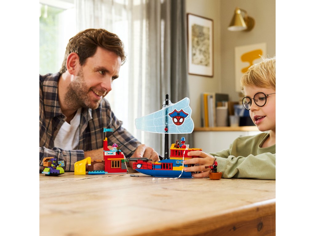 4 MINIFIGURES – Join Spidey, Ghost-Spider, Miles "Spin" Morales, Green Goblin and Trace-E for fun on a pirate ship, Spider Island and 2 other small boats in this action-packed building toy