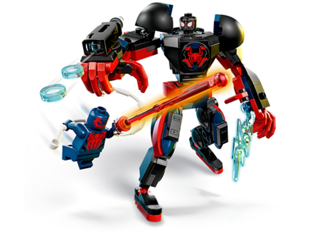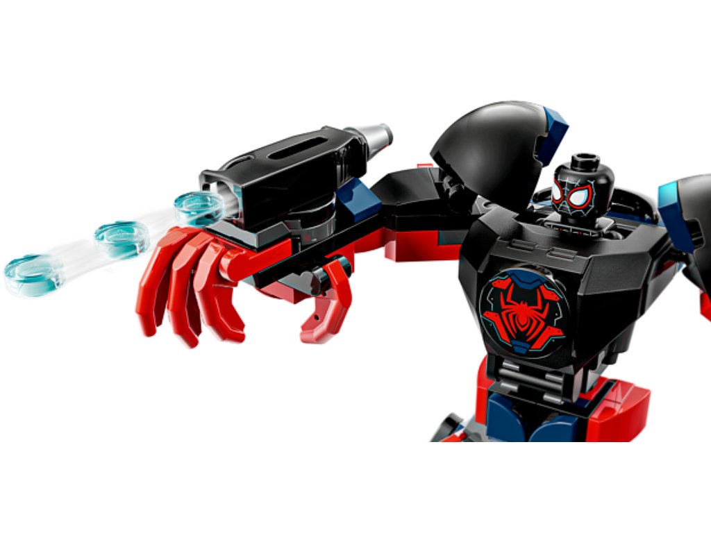 ACCESSORIES FOR ACTION – A powerful 3-stud shooter, web rope and razor web power blasts attached to the Miles Morales mech’s arms, bring the building toy and minifigures to life in kids’ imaginations
